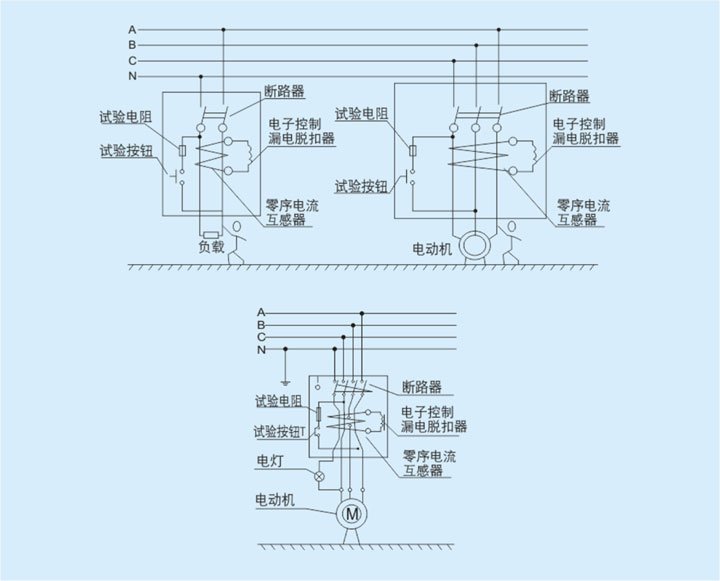當被保護電路中有漏電或人身觸電時,只要剩余電流達到整定動作電流值,零序互感器的二次繞組的輸出信號就觸發(fā)可控硅導通,并通過漏電脫扣器使漏電斷路器動作,從而切斷電源起到漏電和觸電保護作用。