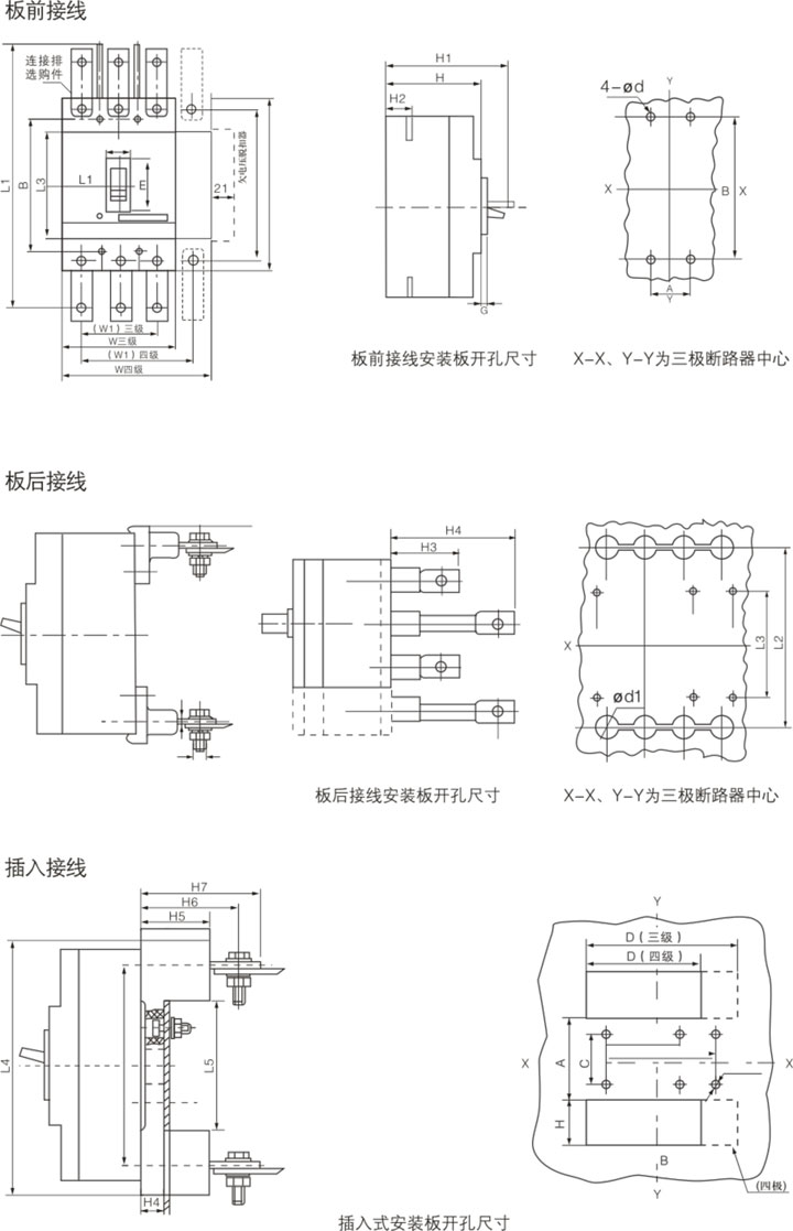 ◇ 按斷路器的接線方式分:a板前接線;b板后接線;c插入式;