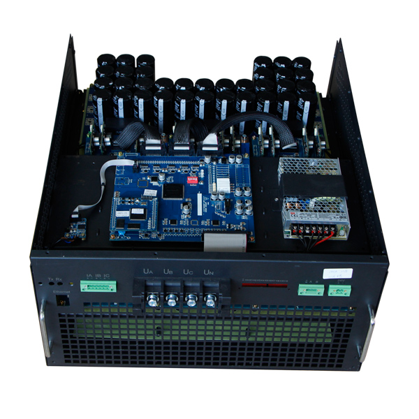 XMPQ通過外部互感器CT,實時檢測電網電流或者負載電流,控制器通過快速傅里葉變換提取出負載的基波電流、各次諧波電流,通過DQ旋轉坐標得到有功、無功、負序等數據,然后通過IGBT功率變換器產生與補償目標(諧波、無功、不平衡)大小相等相位相反的補償電流注入電網,實現對電網側的電能質量改善功能。